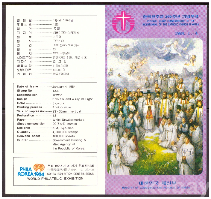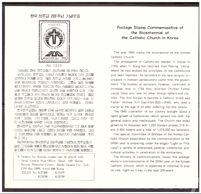 (안내카드) 1984.1.4 한국 천주교 200주년 (가운데접음)
