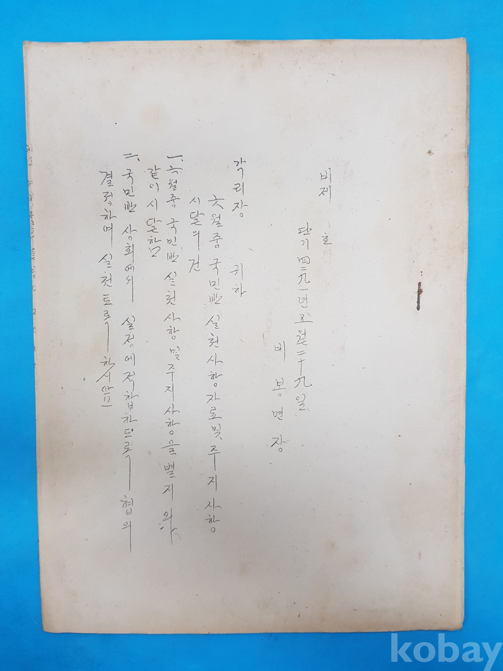 ▶ [화성군 자료] 1958년5월29일/비봉면장/6월중 국민반 실천사항