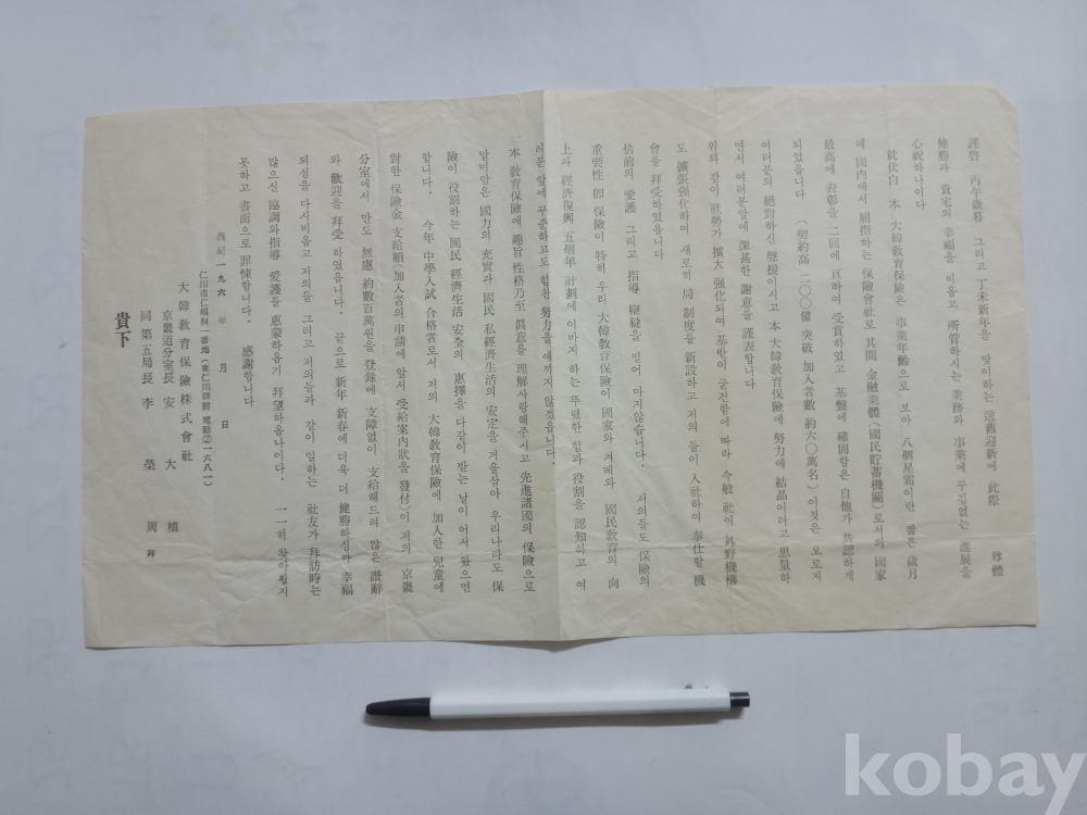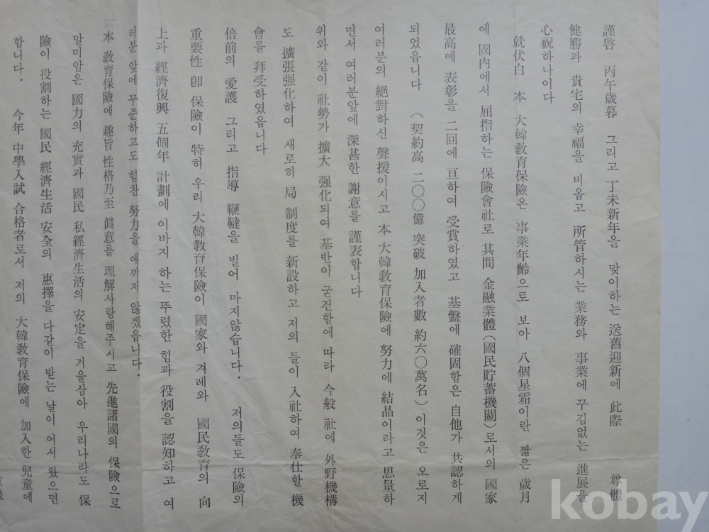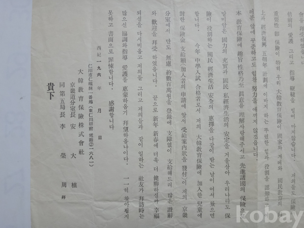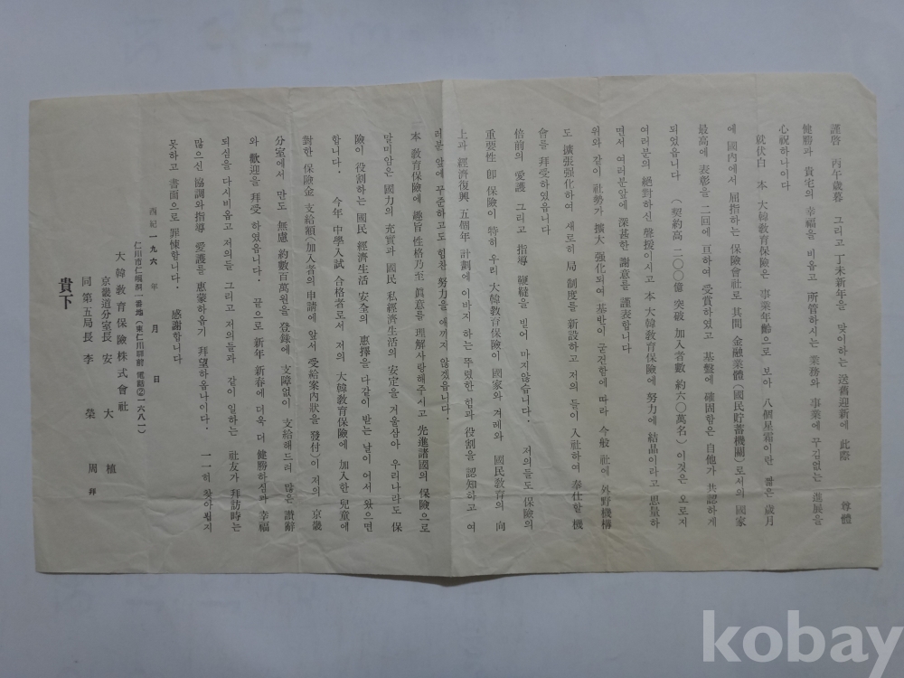 대한교육보험 경기도분실장 - 새해 인사장 (1967년, 인천시 인현동)