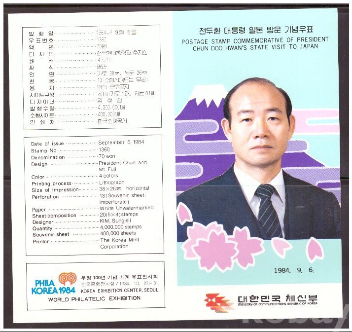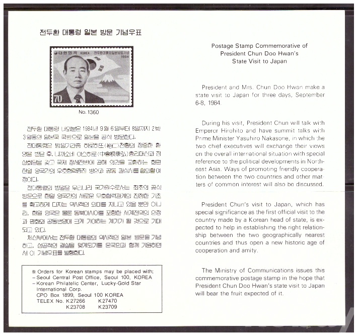 (안내카드) 1984.9.6 전두환대통령 일본 방문 (가운데접음)