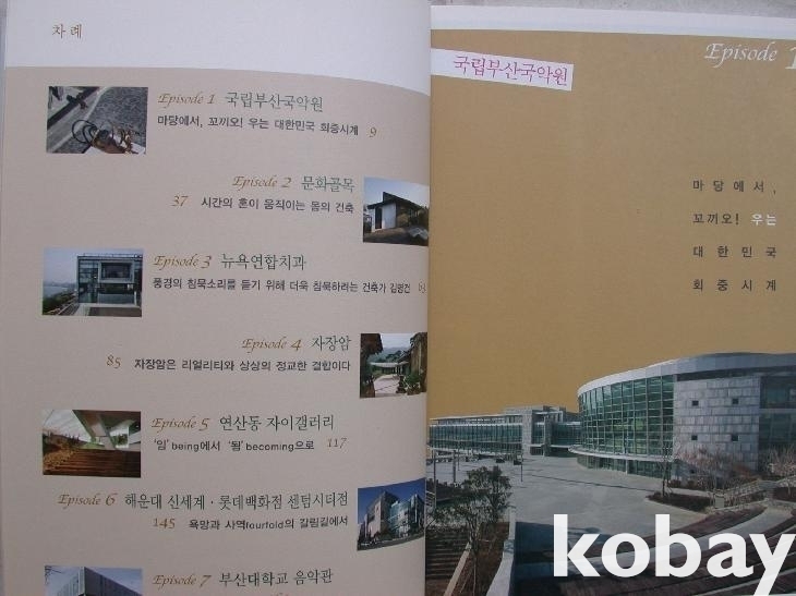 '부산의 건축물'을 대상으로 하여 일반인들과 대화를 나누는 마음으로 잡지에 연재한 글들로, 사진은 원고를 읽고 난 해석대로 사진 시나리오를 구성하여 현장에서 기다려 작업한 조명환 님이 맡아 그 프로다운 모습에 경의를 표한다는 머리말이 있다. 본문은 국립부산국악원, 문화골목, 뉴욕연합치과, 자장암, 연산동 자이갤러리, 해운대 신세계/롯데 센텀시티점, 부산대 음악관의 7 건물을 대상으로 하여 서술하였다.
