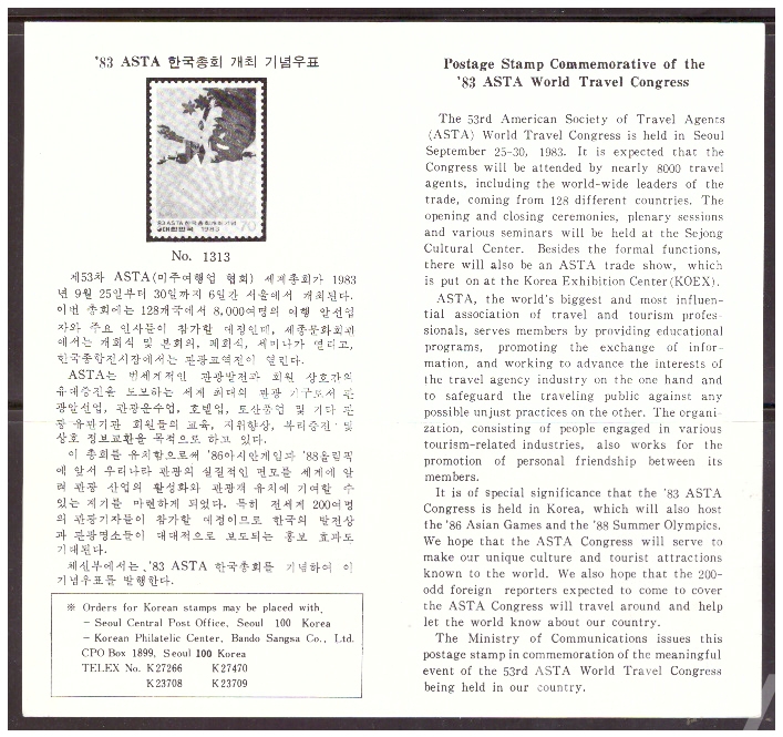 (안내카드) 1983.9.25 '83 ASTA 한국총회 개최 (가운데접음)