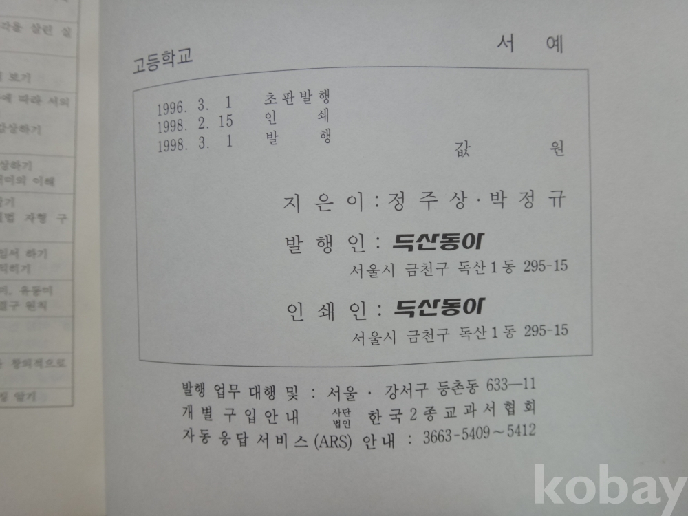 (고등학교) 서예 (1998년, 정주상, 박정규 저, 두산 동아)