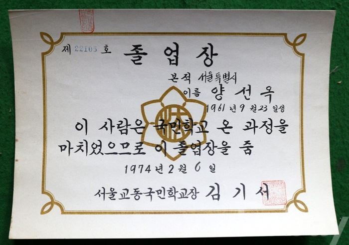 (상장 및 졸업장) 1974년 서울교동국민학교의 졸업장