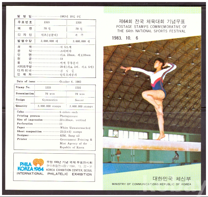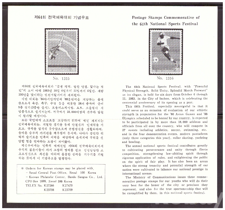 (안내카드) 1983.10.6 제64회 전국 체육대회 (가운데접음)