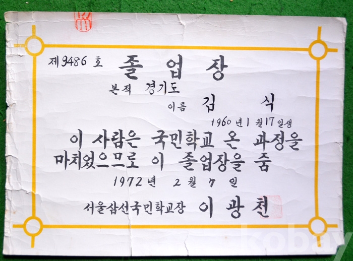(상장 및 졸업장) 1972년 서울삼선국민학교의 졸업장