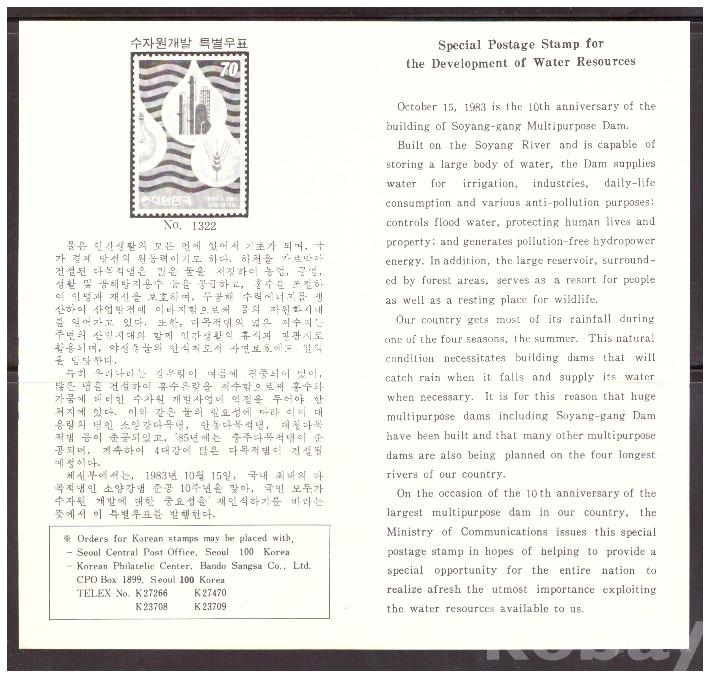 (안내카드) 1983.10.15 수자원 개발 (가운데접음)