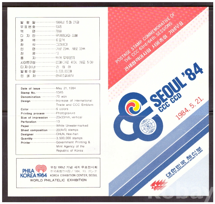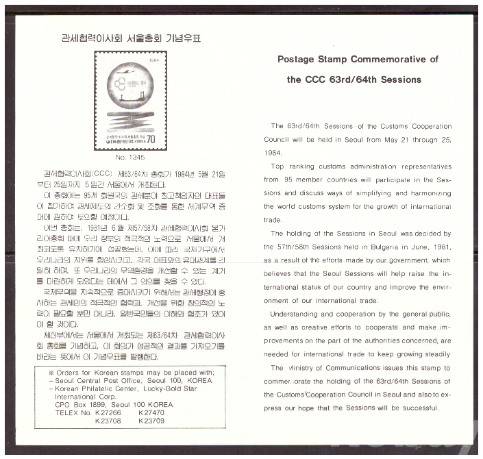 (안내카드) 1984.5.21 관세협력이사회 서울총회 (가운데접음)