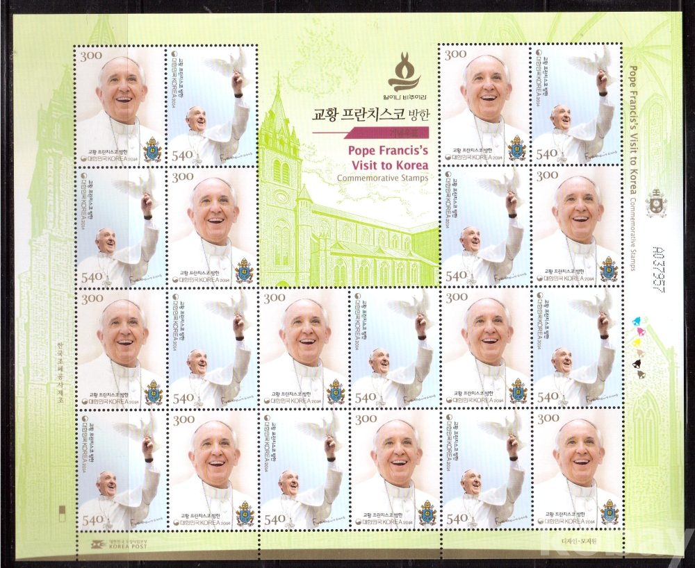 (한국전지) 2014.8.8 교황 프란치스코 방한 sheet of 20 MNH