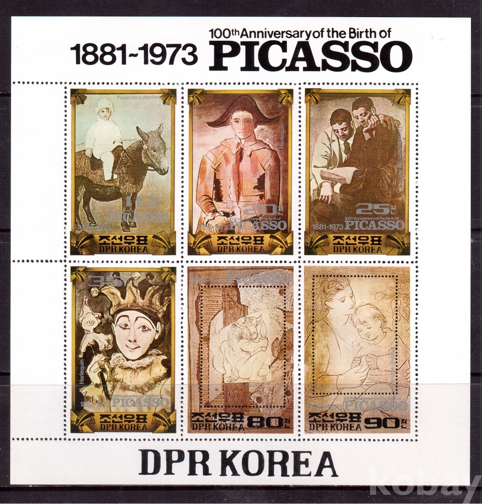 (미술) 북한 1982.3.30 삐까쏘 생일 100돐 sheetlet of 6 MNH