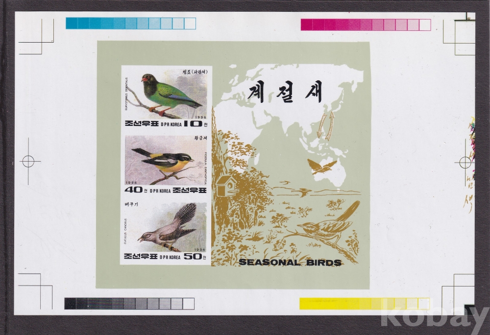 - 윗동네 1996년 조선우표 시쇄 / 프루프 - 계절새 시리즈