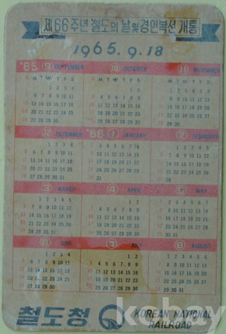 1965년 제66주년 철도의 날 및 경인복선 개통 기념 포켓 달력