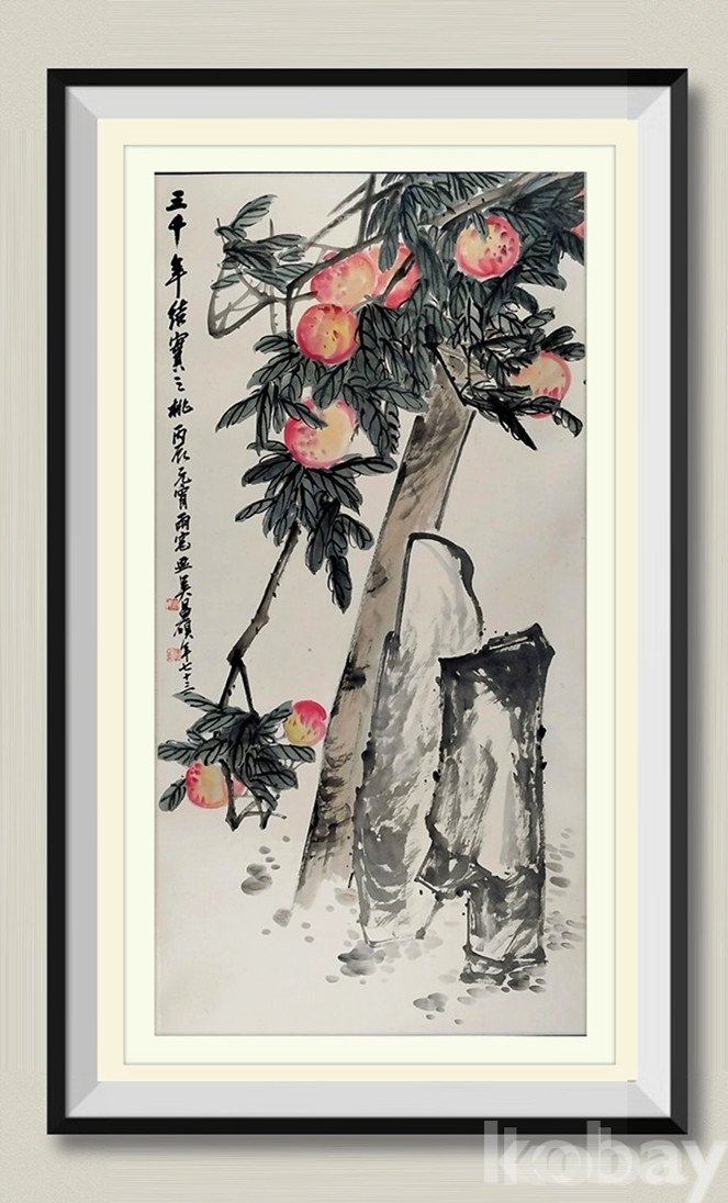 83세 말년작인 이 작품은 장수의 상징 천도복숭아가 열린 복숭아나무와 괴석을 그린,