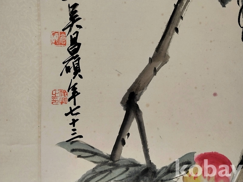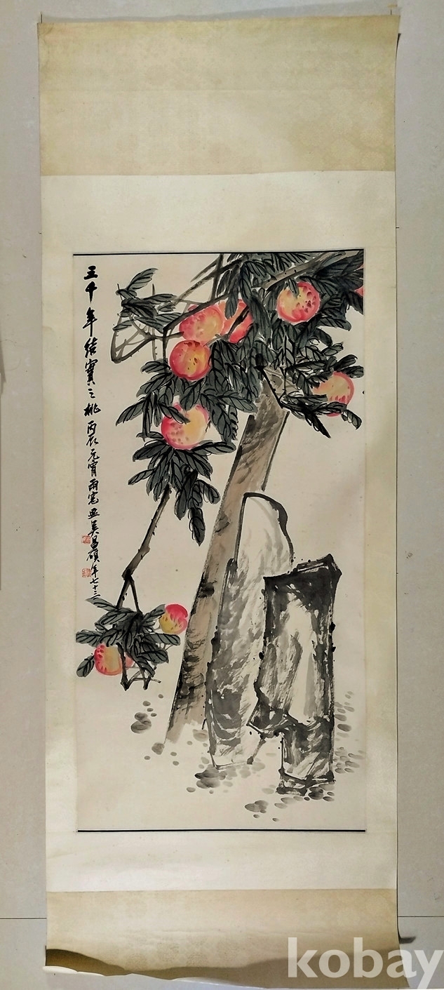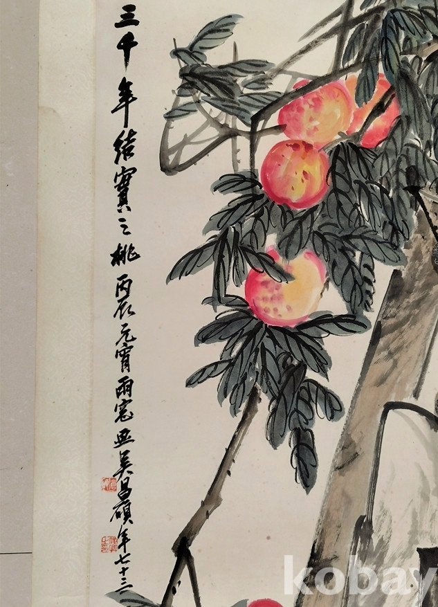 청말 민국초 중국화대가 오창석(吴昌硕) 1926년 대형중국화 수도(壽桃,천도복숭아)
