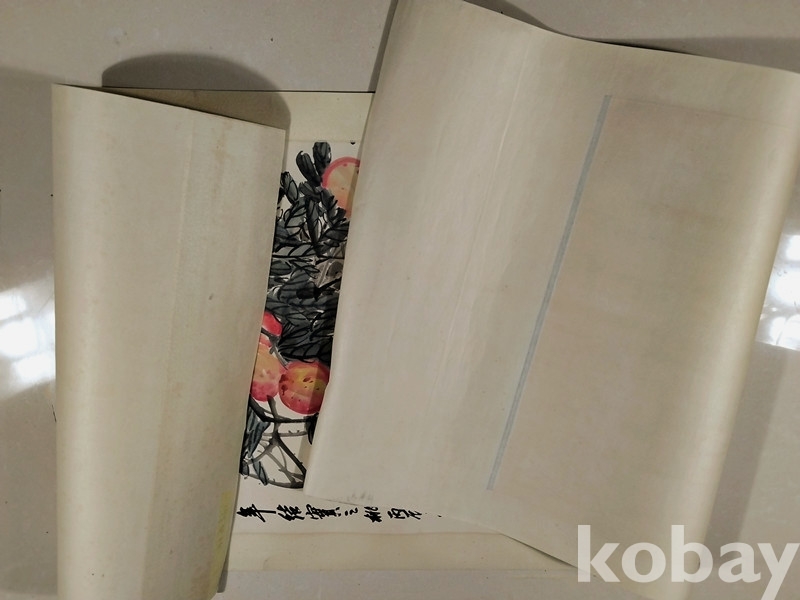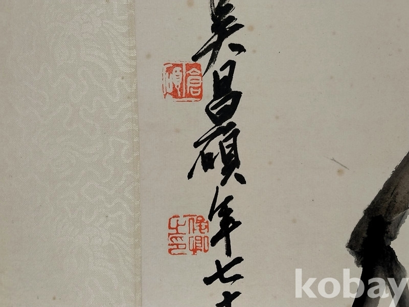 족자에 말려 잘 보관되던 대폭작품으로,족자와 뒷부분에 세월의 흔적이 보일 뿐