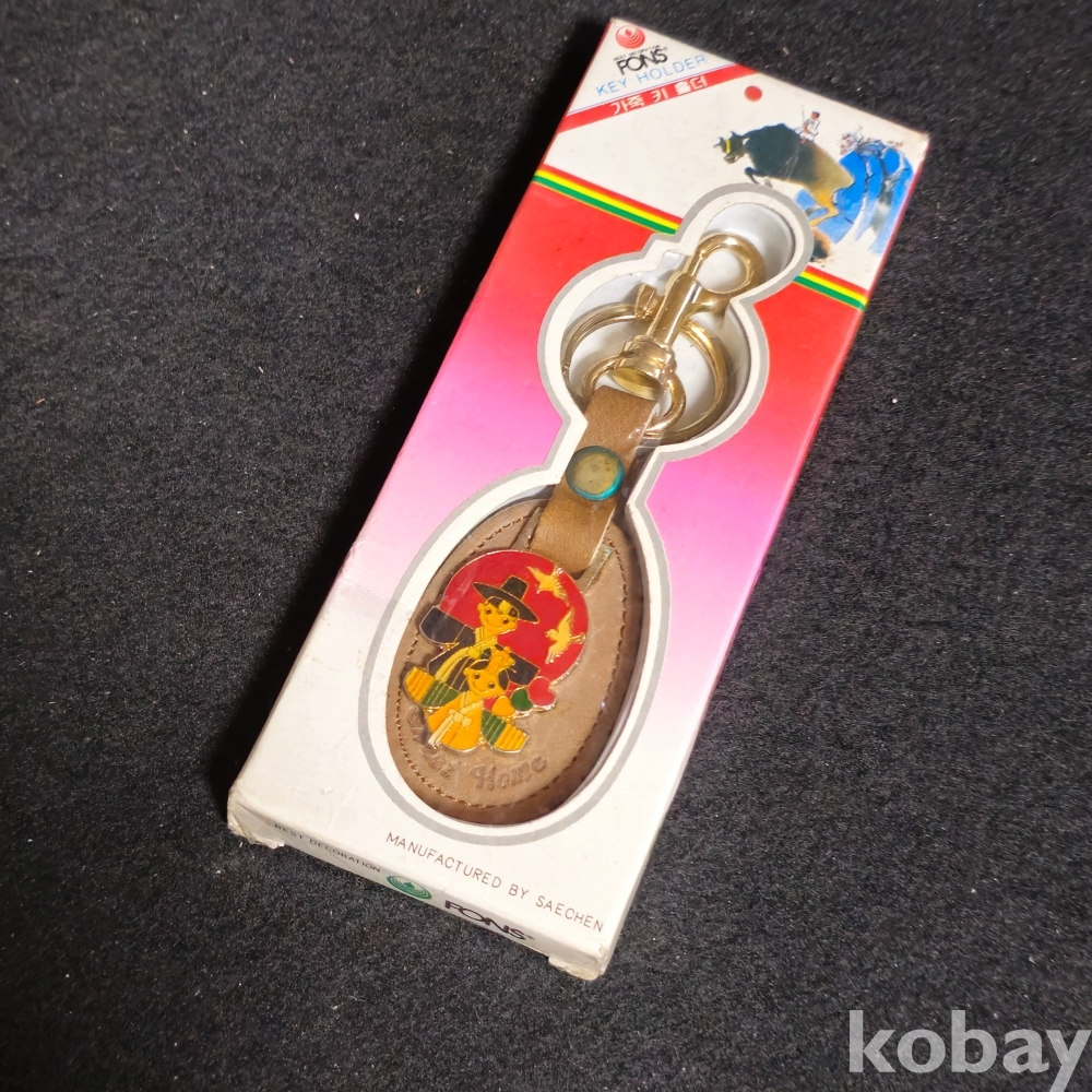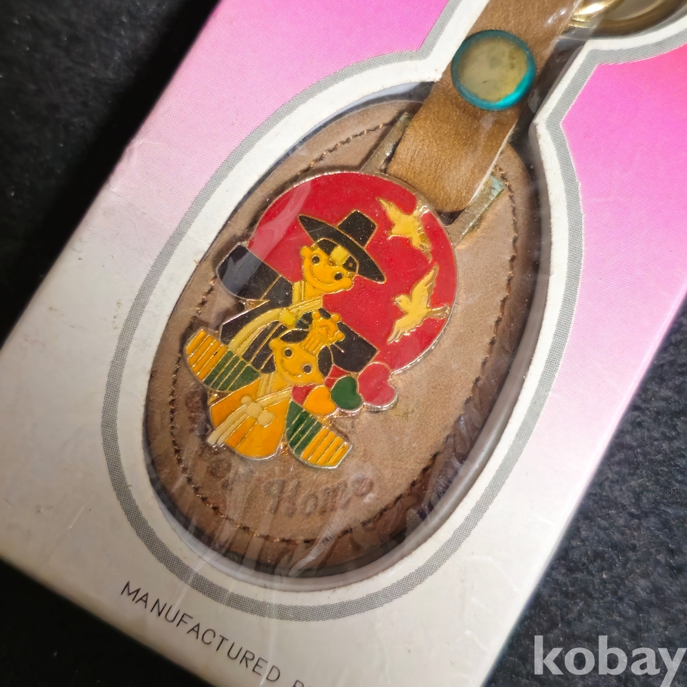 (((근현대사자료/키링/키홀더/열쇠고리/가방걸이))) 오래전 가죽에 신랑신부 금속부착 키링 (미사용)