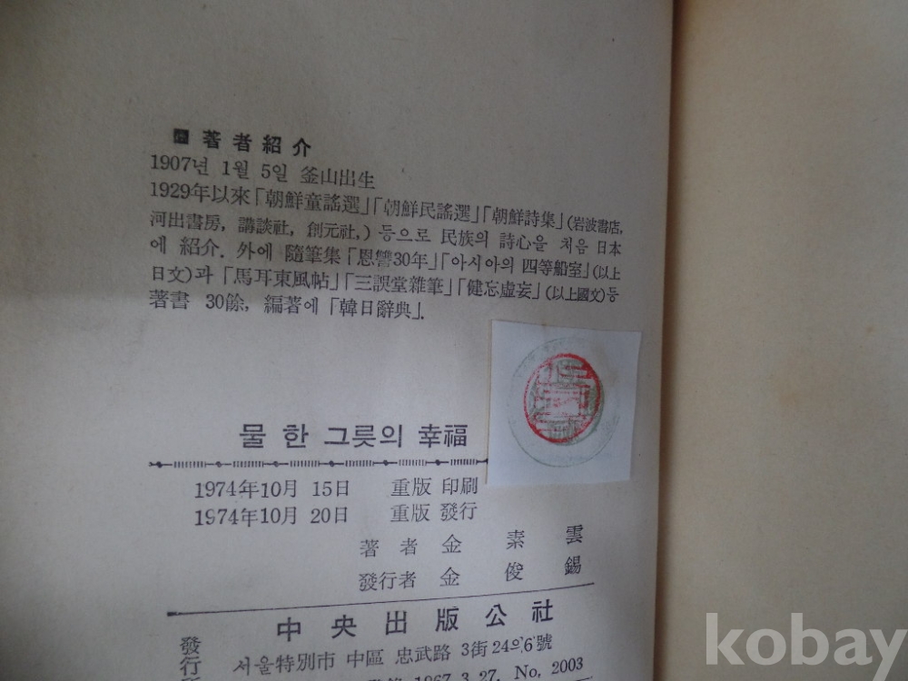 물 한 그릇의 행복 ,,,하드카바,,,김소운 지음,,74년