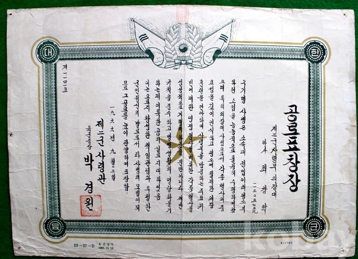 (상장 및 졸업장) 1966년 제2군사령관 박경원 중장의 공로표창장