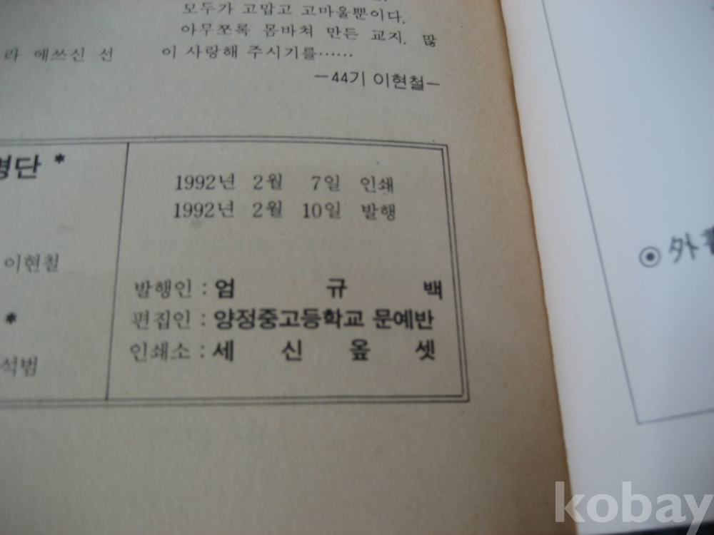 교지,,,54호 양정 ,,,양정중고 발행,,,92년