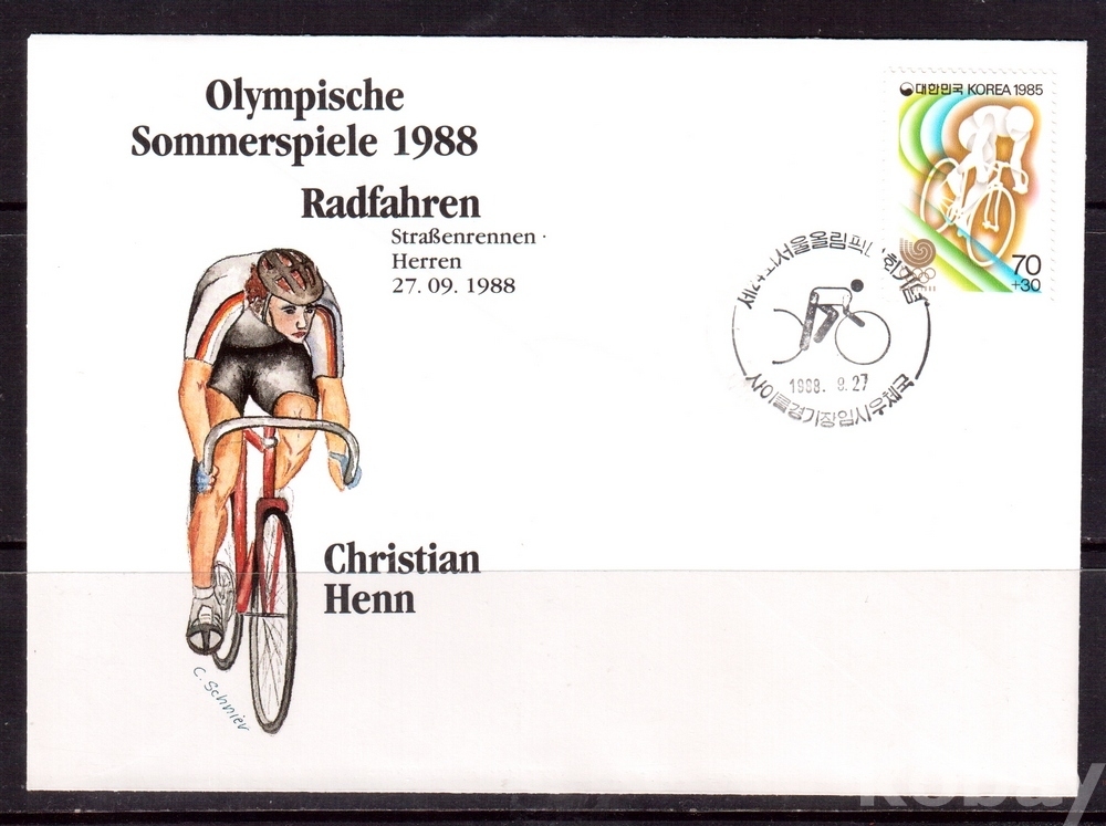 (서울올림픽) 1988 서울올림픽 싸이클 개인도로경주 동메달 서독 Christian Henn FDC