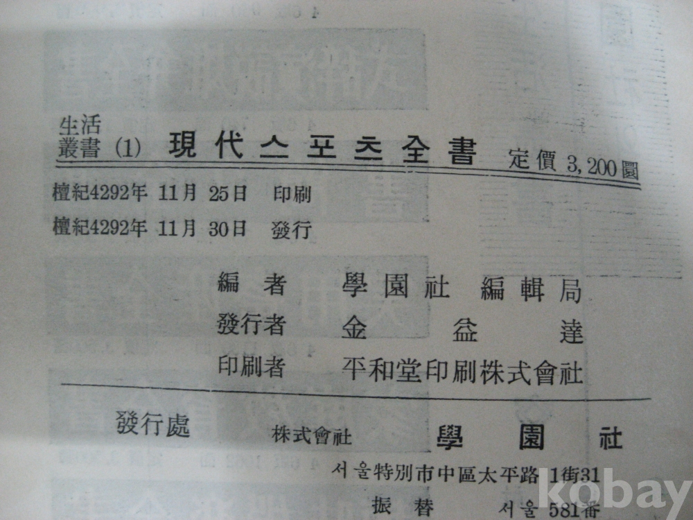 현대 스포츠 전서 ,,하드카바,,학원사 발행,,,,4292년