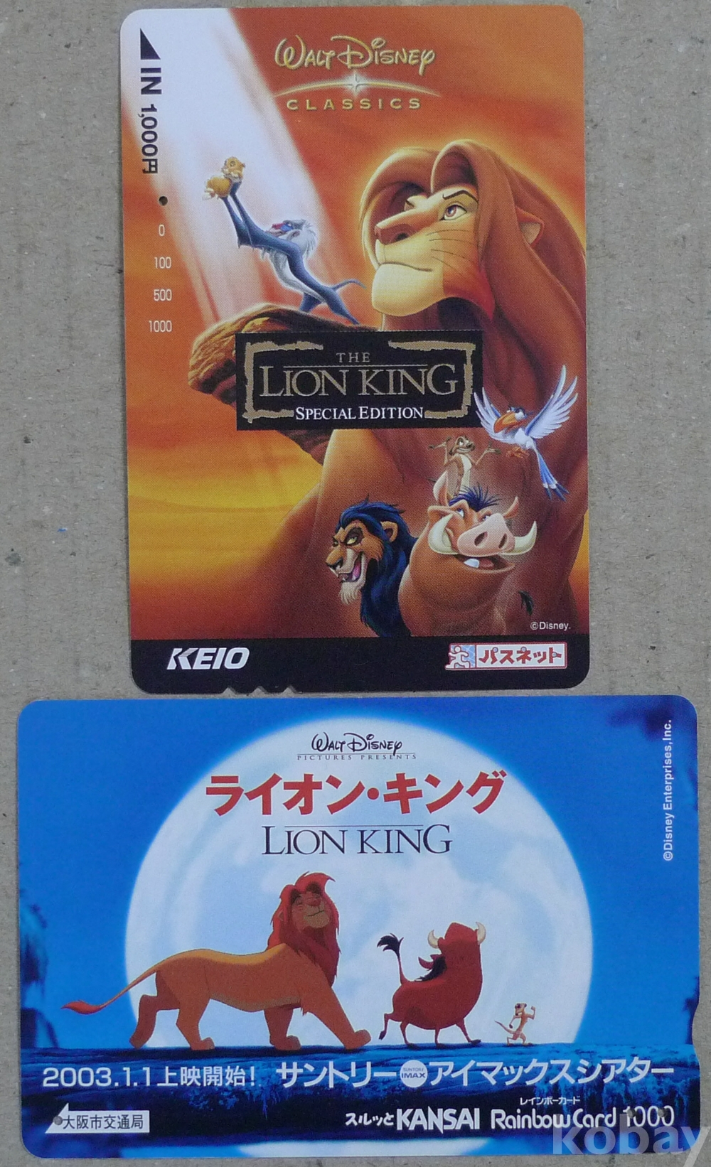 디즈니 만화영화 라이온 킹 광고 일본 철도카드 2장