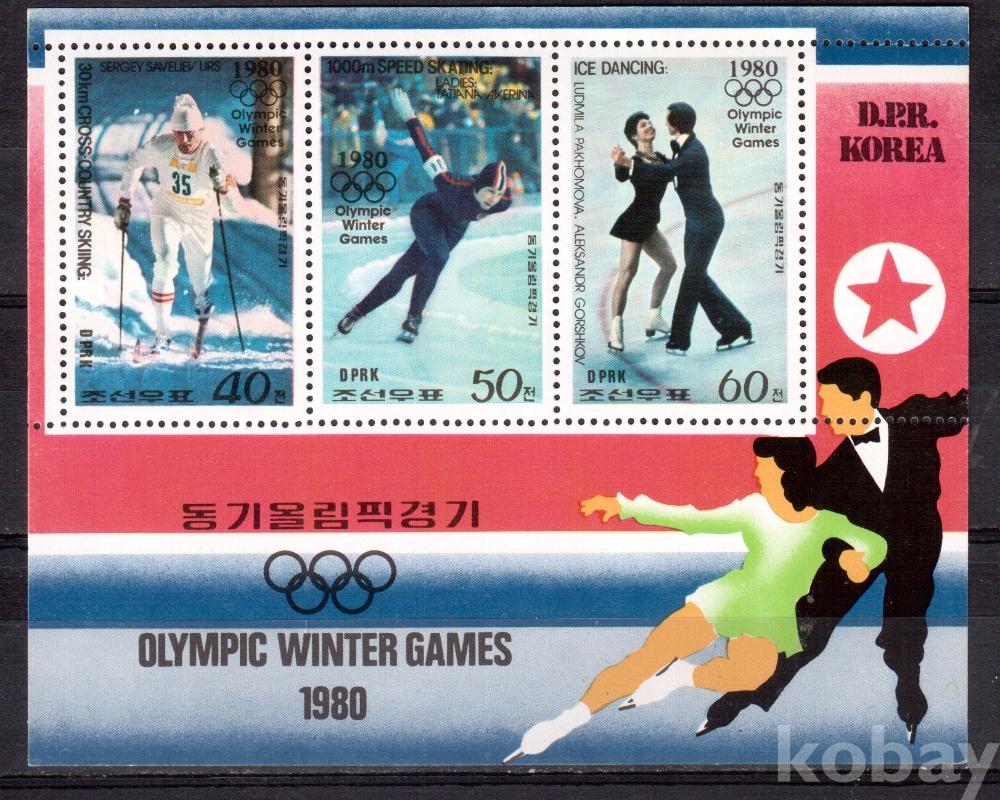 (동계올림픽) 북한 1979.12.9 1980년 겨울철올림픽경기대회 무공 sheetlet of 3 MNH