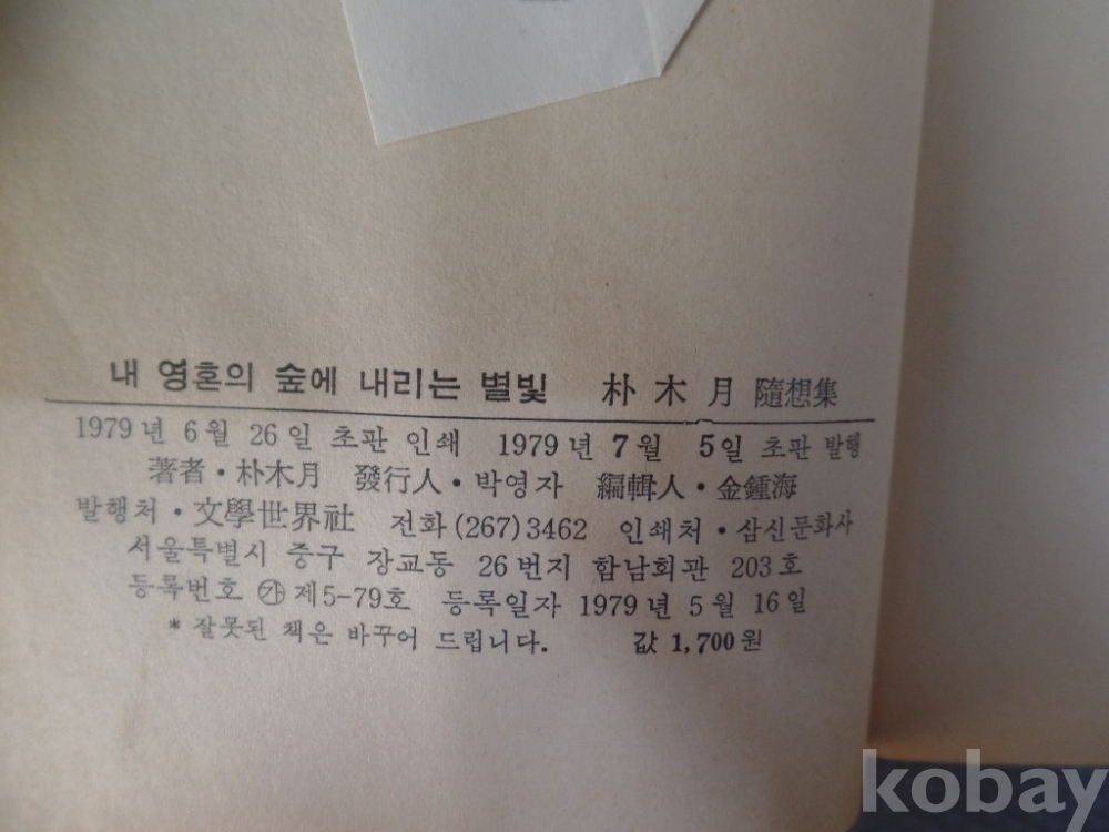 박목월 수상집,,내 영혼에 숲에 내리는 별빛,,,,79년초판