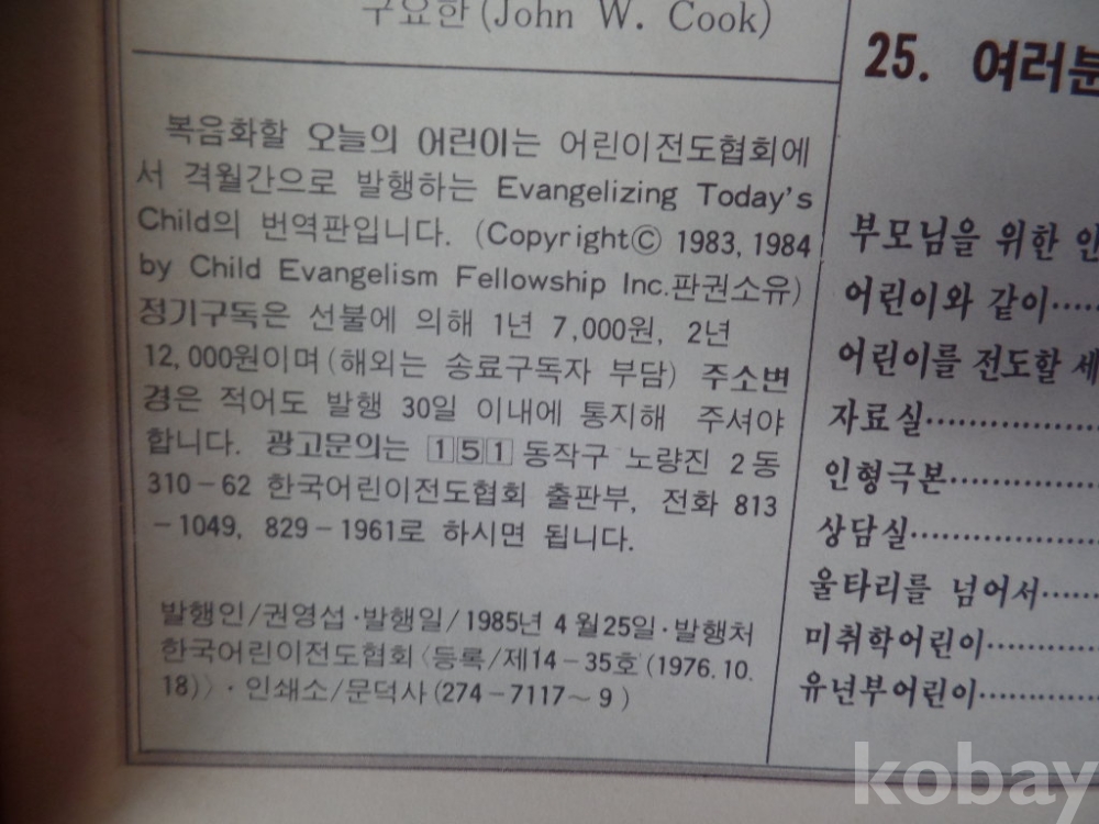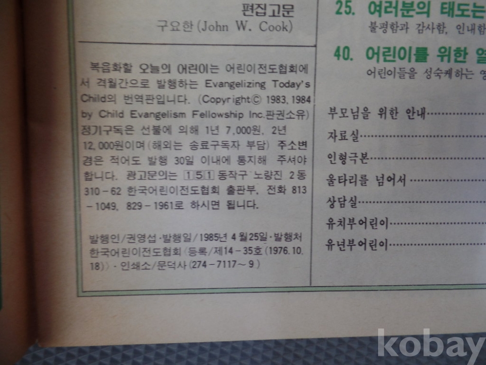 월간지,,,,복음화할 오늘의 어린이,,,85--88년,,,합7권,,