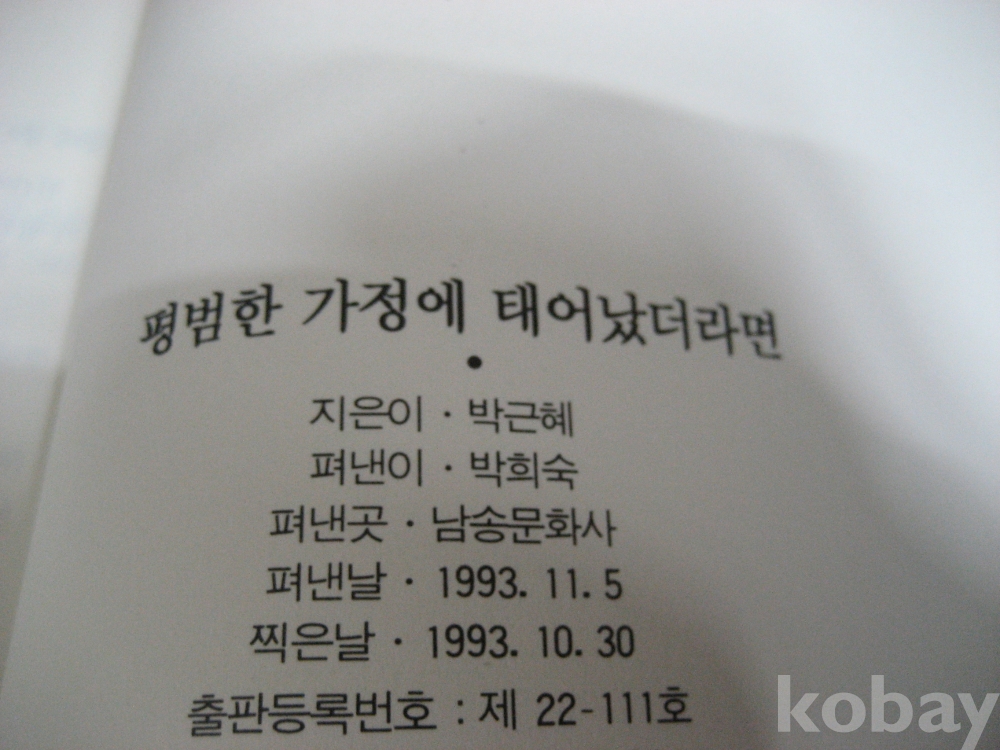 평범한 가정에 태어났더라면 ,,,박근혜 지음,,,,93년
