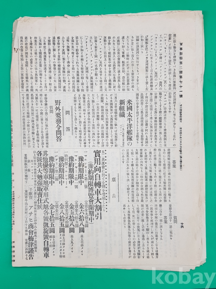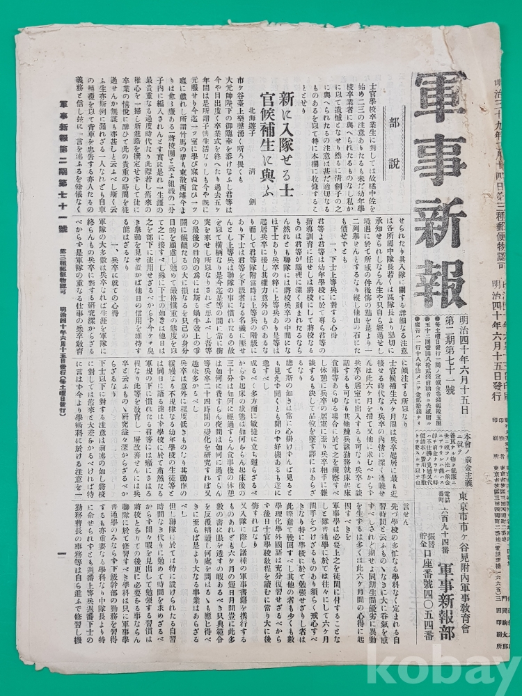 **** 明治년간 발행한 [軍事新報]*16면/明治39년02월14일/