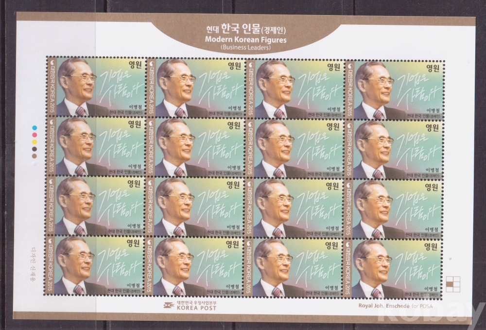 (한국전지) 2015.8.26 현대 한국 인물(경제인)-이병철 sheet of 16 MNH
