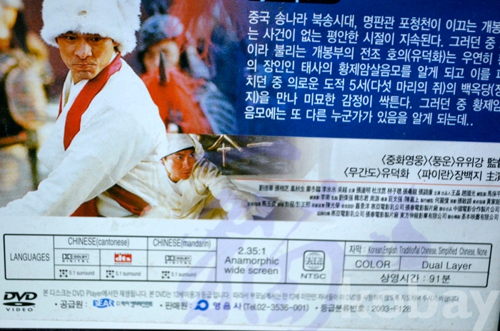 DVD는 정품인데 수출용(?)인지 일반 DVD 케이스보다는 약간 얇은 케이스에 담겨 있음