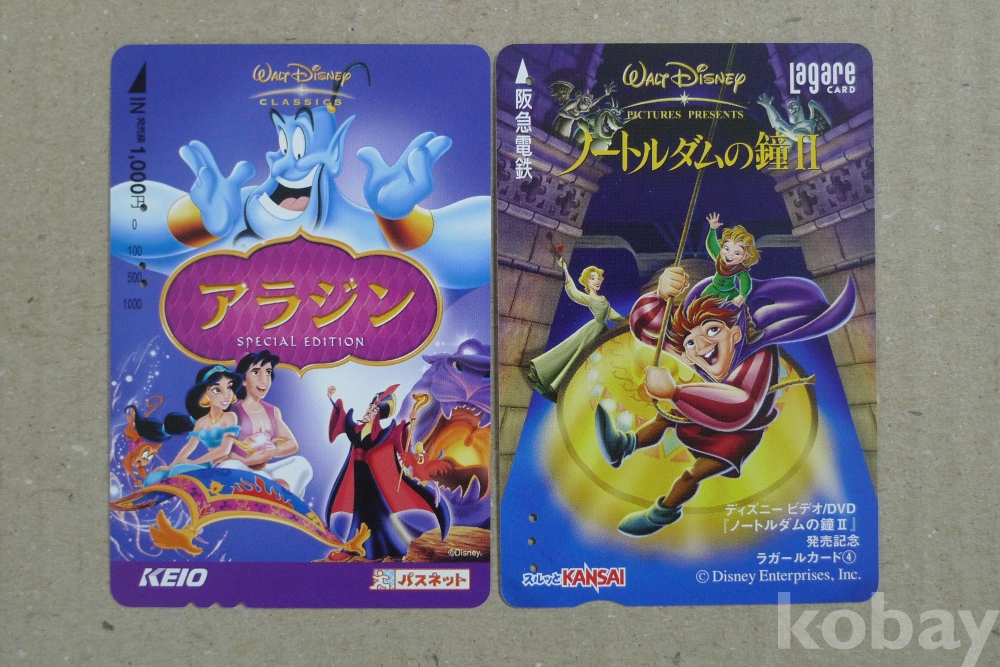 디즈니 만화영화 알라딘, 노틀담의 꼽추 광고 일본 철도카드 2장