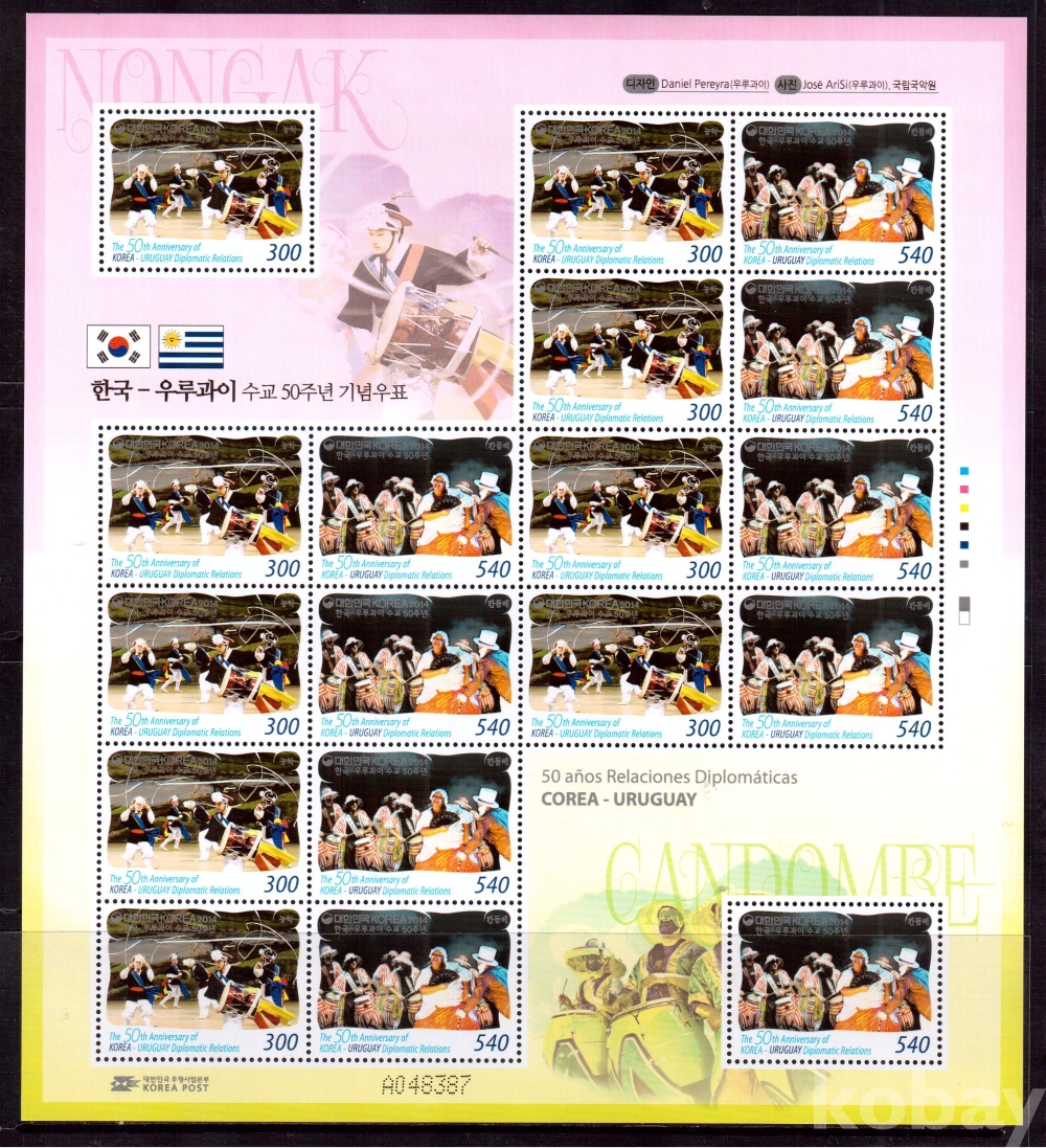 (한국전지) 2014.10.7 한국-우루과이 수교 50주년 sheet of 18 MNH