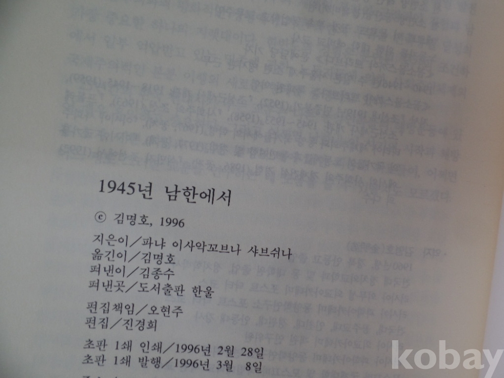 식민지 조선에서 // 1945 남한에서 ,,,,파냐 이사악꼬브나 샤브쉬나 지음,,,96년,,,합2권,,