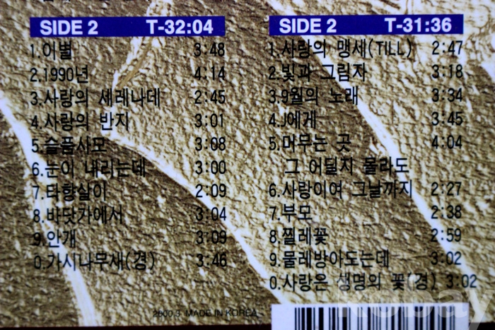 수록 곡 목은 사진을 참조하시기 바랍니다