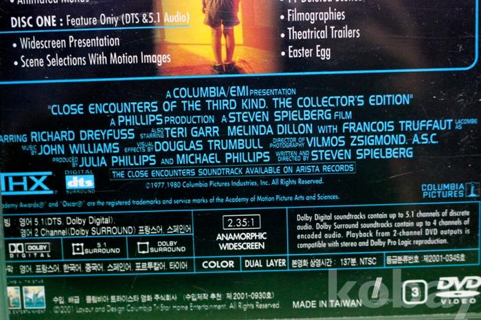 DVD는 정품인데 수출용(대여용?)인지 일반 DVD 케이스보다는 약간 얇은 케이스에 담겨 있음