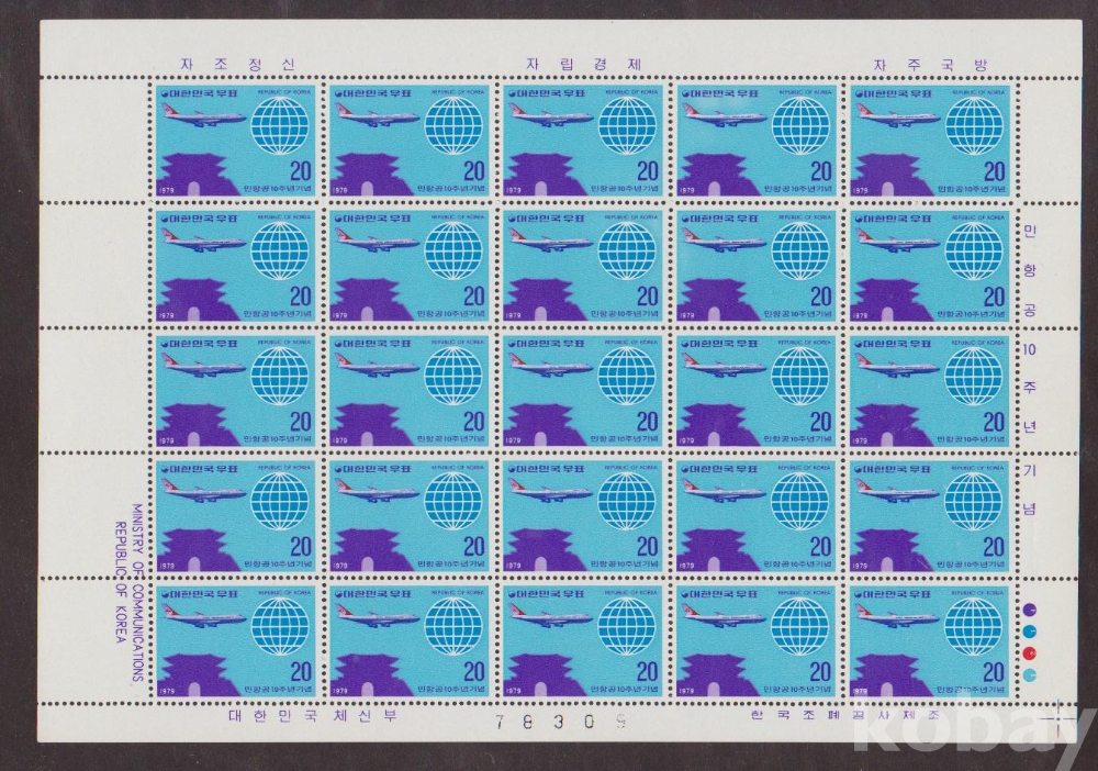 (한국전지) 1979.8.1 민항공 10주년 sheet of 25 MNH