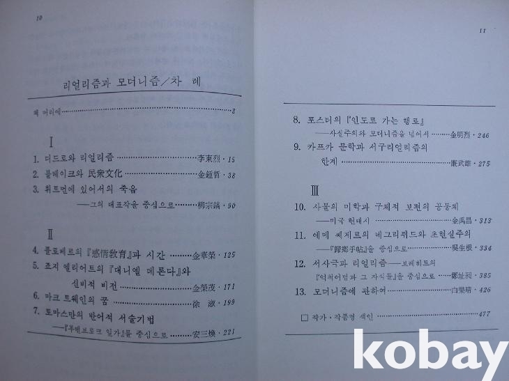 편자의 서문에서 이 책이 <서구 리얼리즘소설 연구>의 후속기획으로서 여러 장르룰 포함하면서 서구에서의 리얼리즘과 모더니즘의 문제를 살펴본 것이라고 하였다. 대가들의 대표작 위주로 외국문학자의 분석적인 글들 열세 편의 글을 세 묶음으로 나누어 구성하였다.