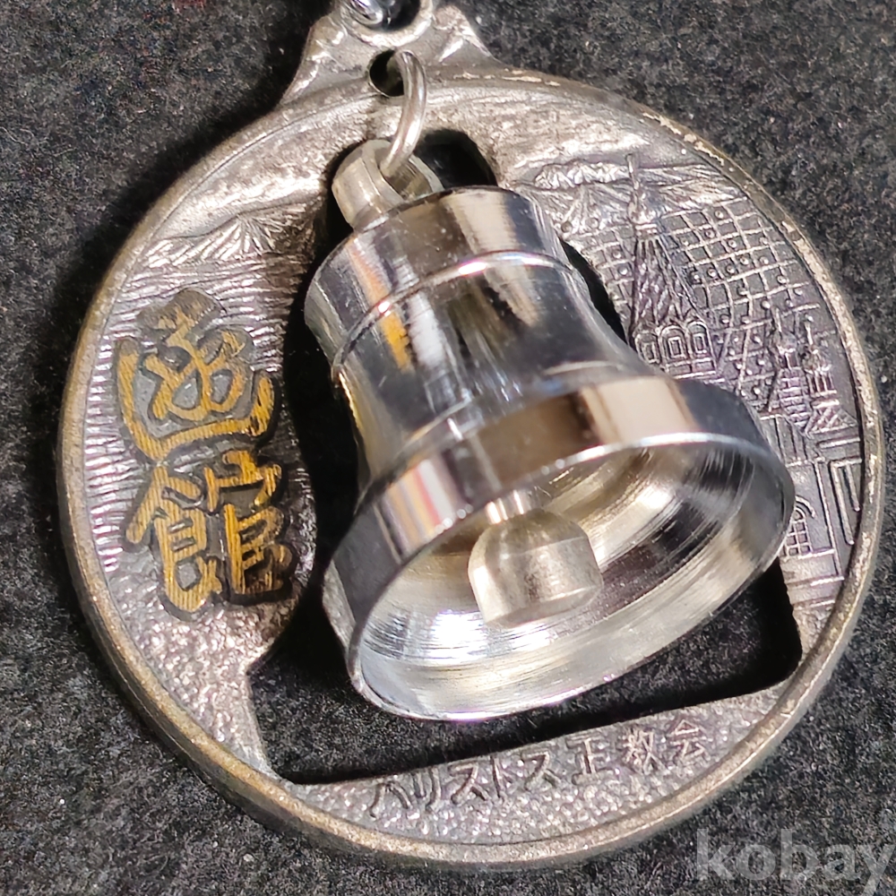 (((관광기념품/키홀더/키링/열쇠고리/가방걸이))) 오래전 일본 HAKODATE (하코다테) 관광기념 종 달린 금속 키홀더
