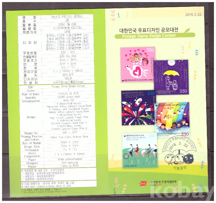 (안내카드) 2018.2.22 대한민국 우표디자인 공모대전 (접지않음)