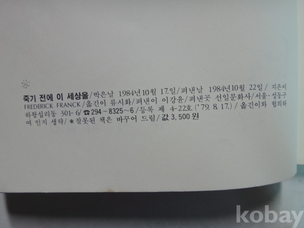 화가가 알려주는 이세상 비밀 이야기 - 죽 전에 이 세상을 (프레테릭 프랑크, 류시화 옮김, 1984년, 선일문화사)