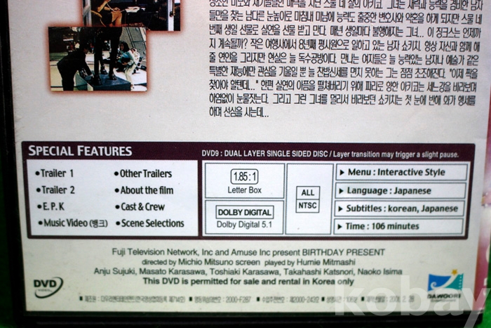 DVD는 정품인데 수출용(대여용?)인지 일반 DVD 케이스보다는 약간 얇은 케이스에 담겨 있음