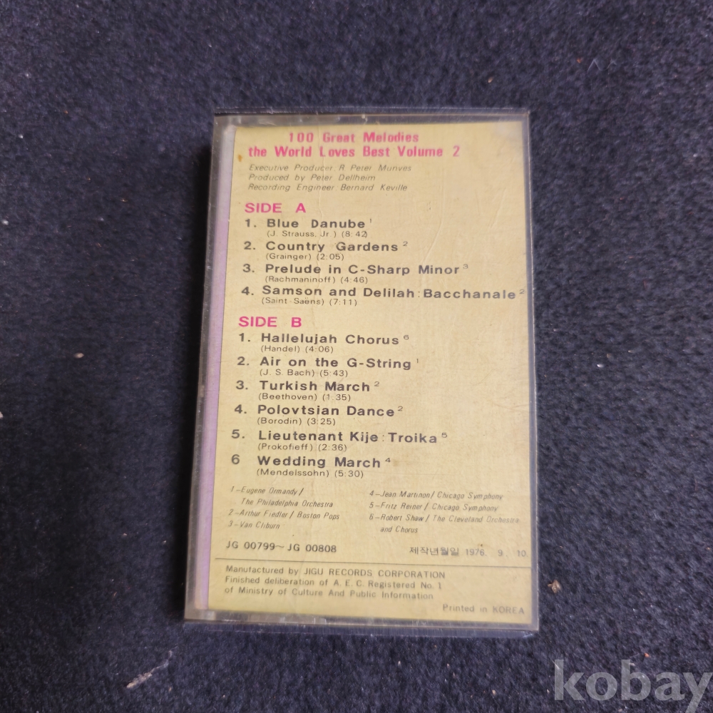 (천원경매) (((카세트테이프))) 100 Great Melodies the World Loves Best Volume 2 카세트 테이프 (지구레코드)