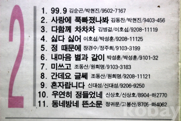 수록 곡 목은 사진을 참조하시기 바랍니다