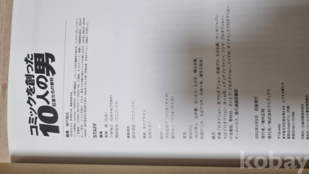 일본에서 출판된 코믹을 창조한 10인의 남자라는 제목의 작품 소개집입니다.