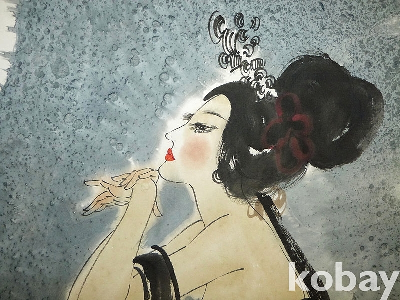 현대 중국화 공필인물화(정밀인물화) 미인도대가 하가영(何家英)과 함께