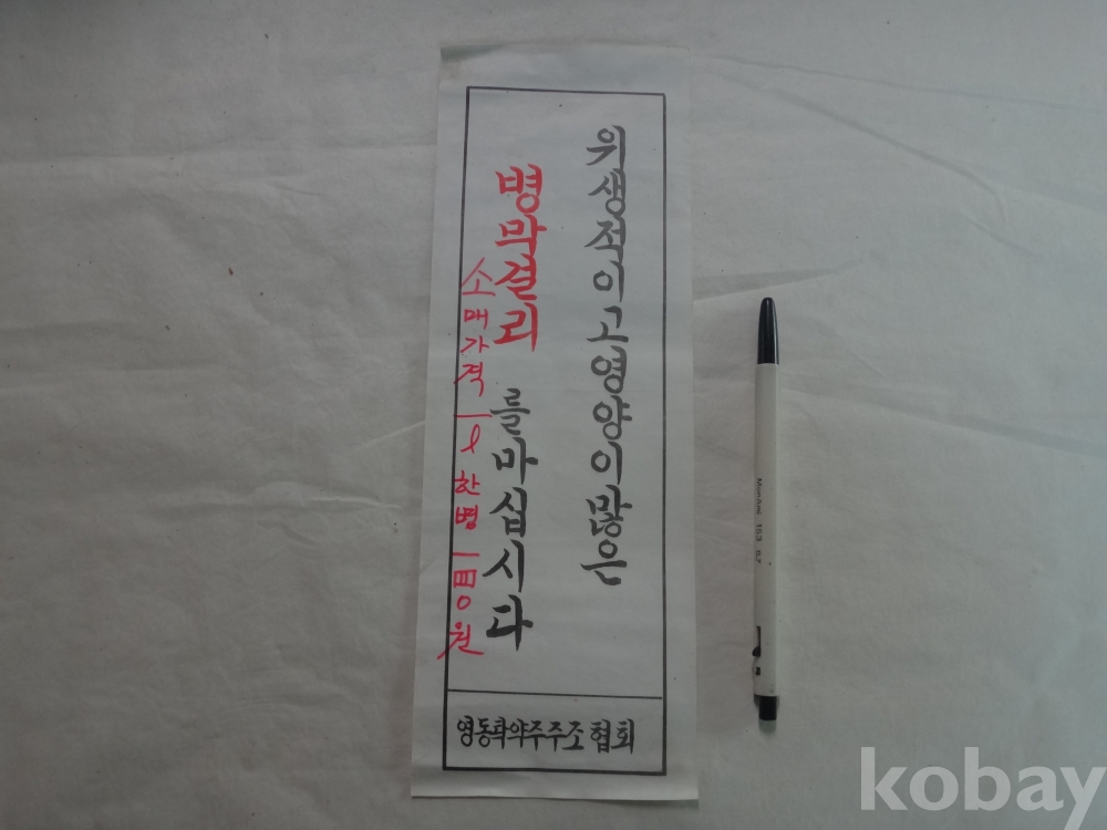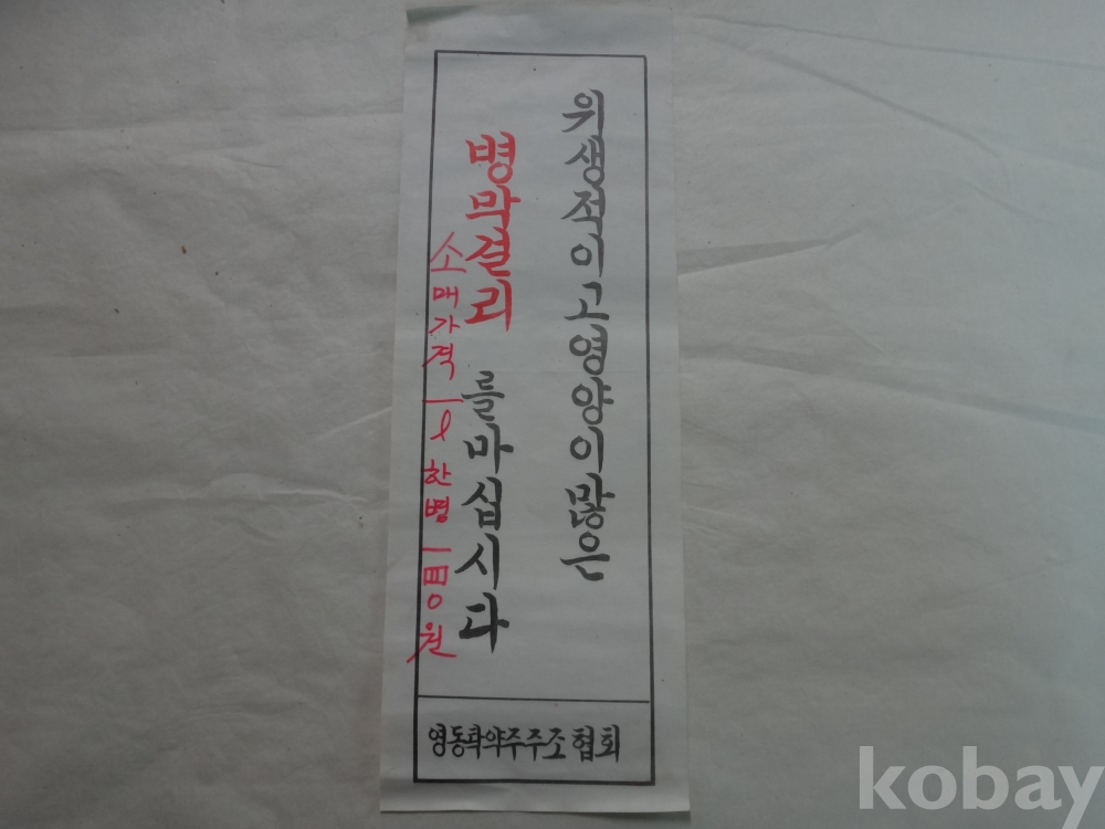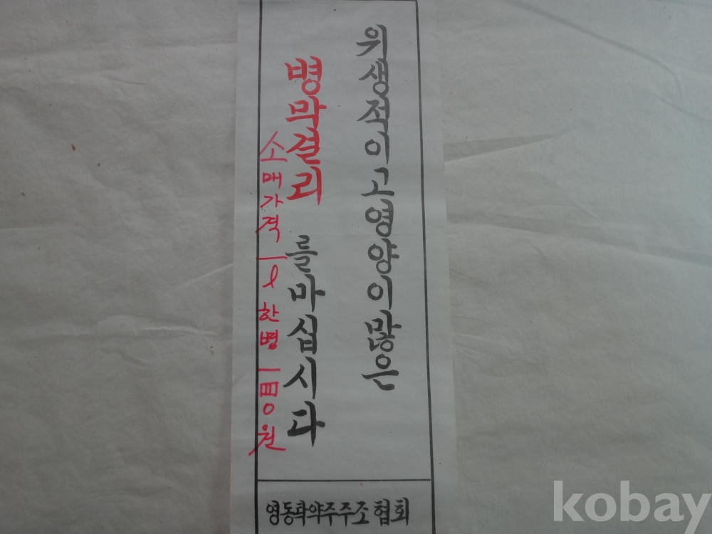 위생적이고 영양이 많은 병 막걸리를 마십시다 - 소매가격 1리터 한병 140원 (영동탁약주 주조협회)