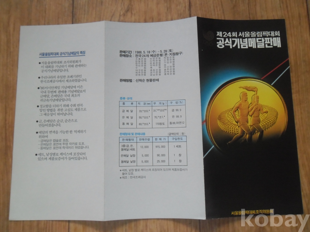 제24회 서울올림픽대회 공식기념메달판매 안내